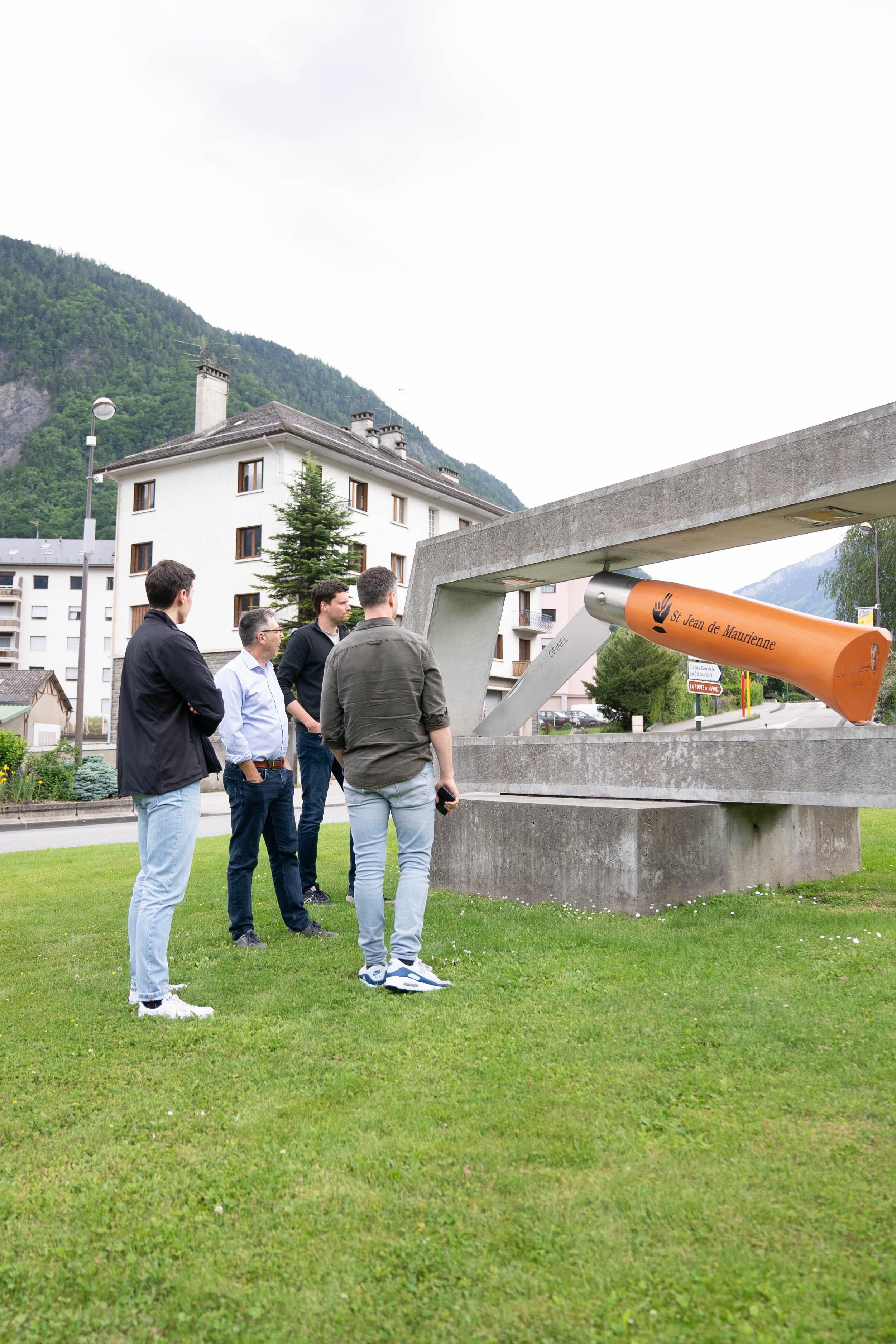 Dopo la visita al museo, siamo tornati alla fabbrica, situata accanto alla sede centrale di Opinel. Durante il tragitto, abbiamo incrociato l'Opinel più grande del mondo, esposto con orgoglio su una rotonda di Saint-Jean-de-Maurienne. Questo famoso punto di riferimento è uno dei preferiti dagli appassionati del Tour de France. Opinel ha quindi realizzato diverse edizioni speciali dei suoi coltelli in onore del Tour de France. Il 2024 è un anno speciale per Opinel, poiché il Tour de France partirà da Saint-Jean-de-Maurienne, dove si trova anche il museo.
