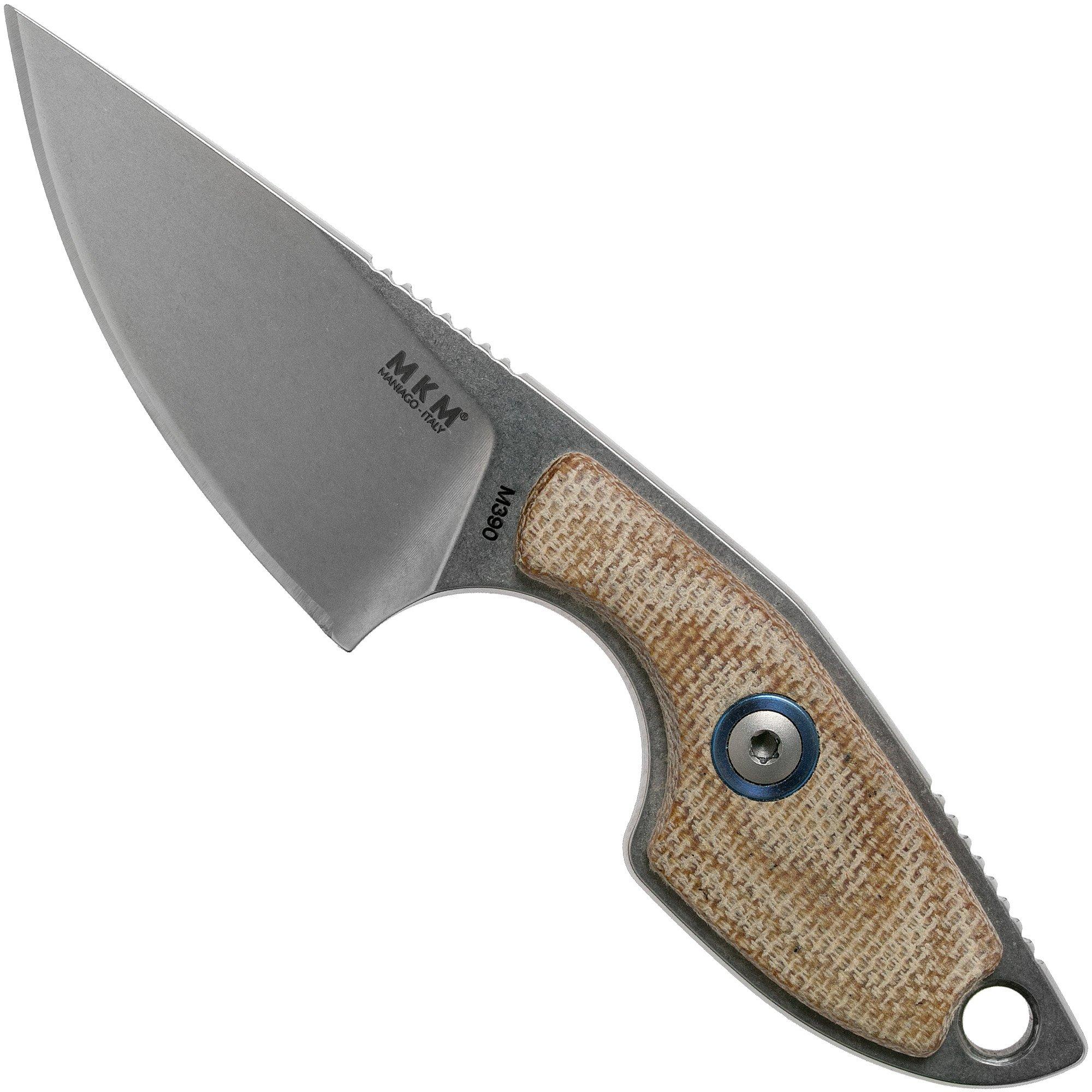 MKM Mikro 1 Drop, Stonewashed Natural Canvas Micarta coltello da collo, Jesper Voxnaes design