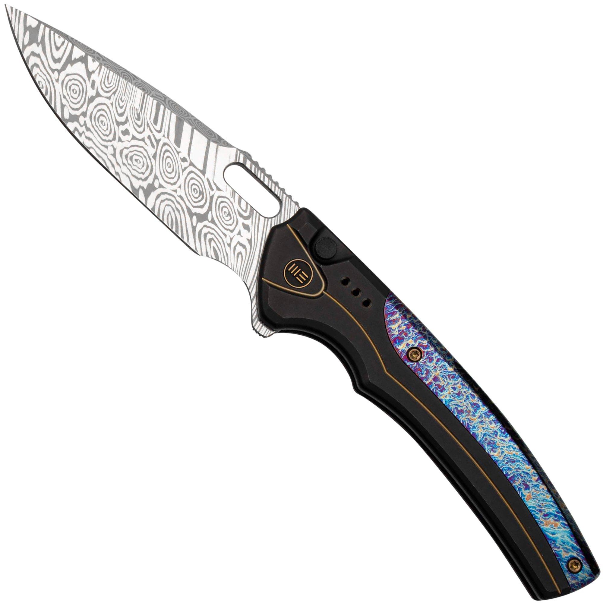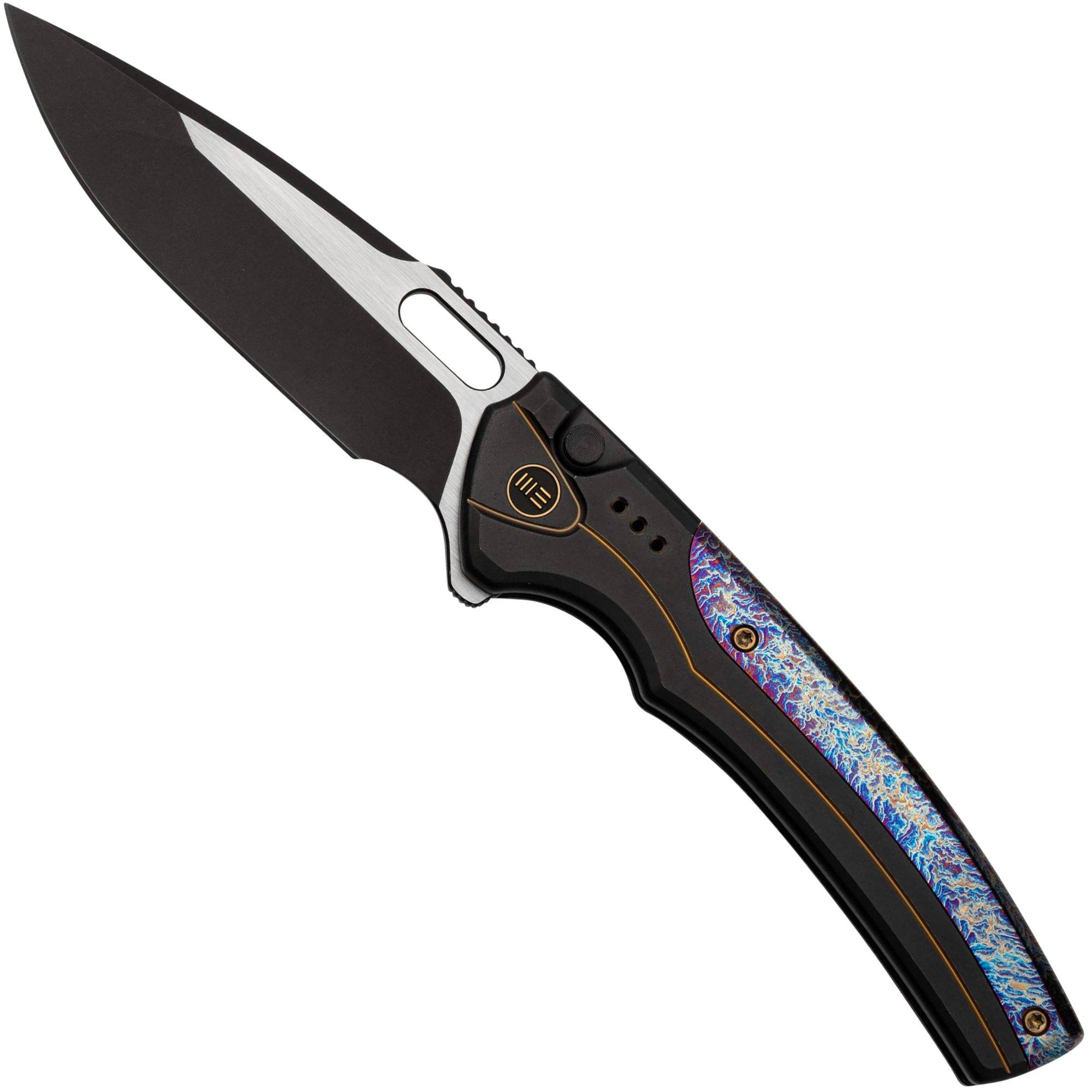 WE Knife Exciton WE22038A-6, Bead Blasted CPM 20CV Droppoint, Flamed Black Titanium, coltello da tasca