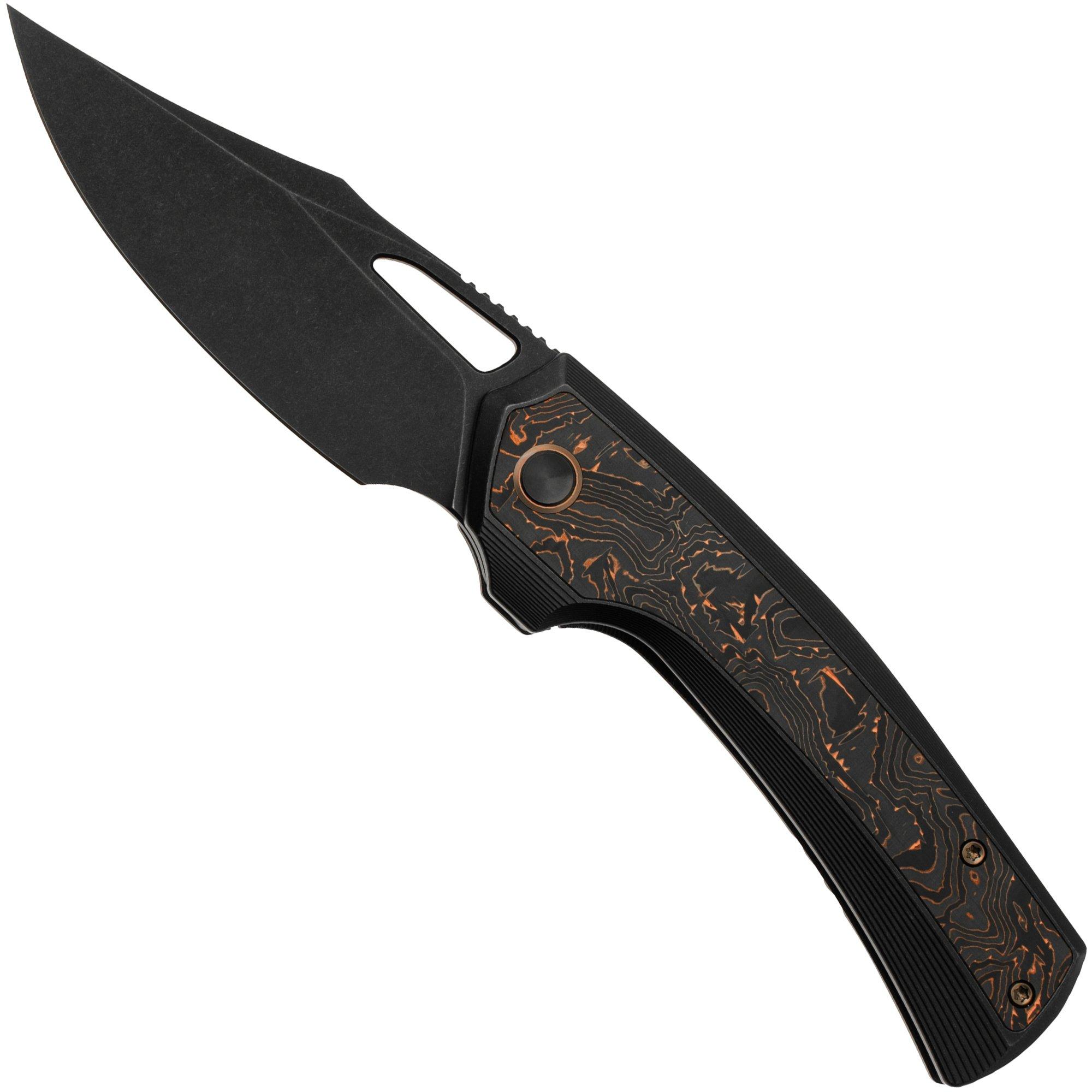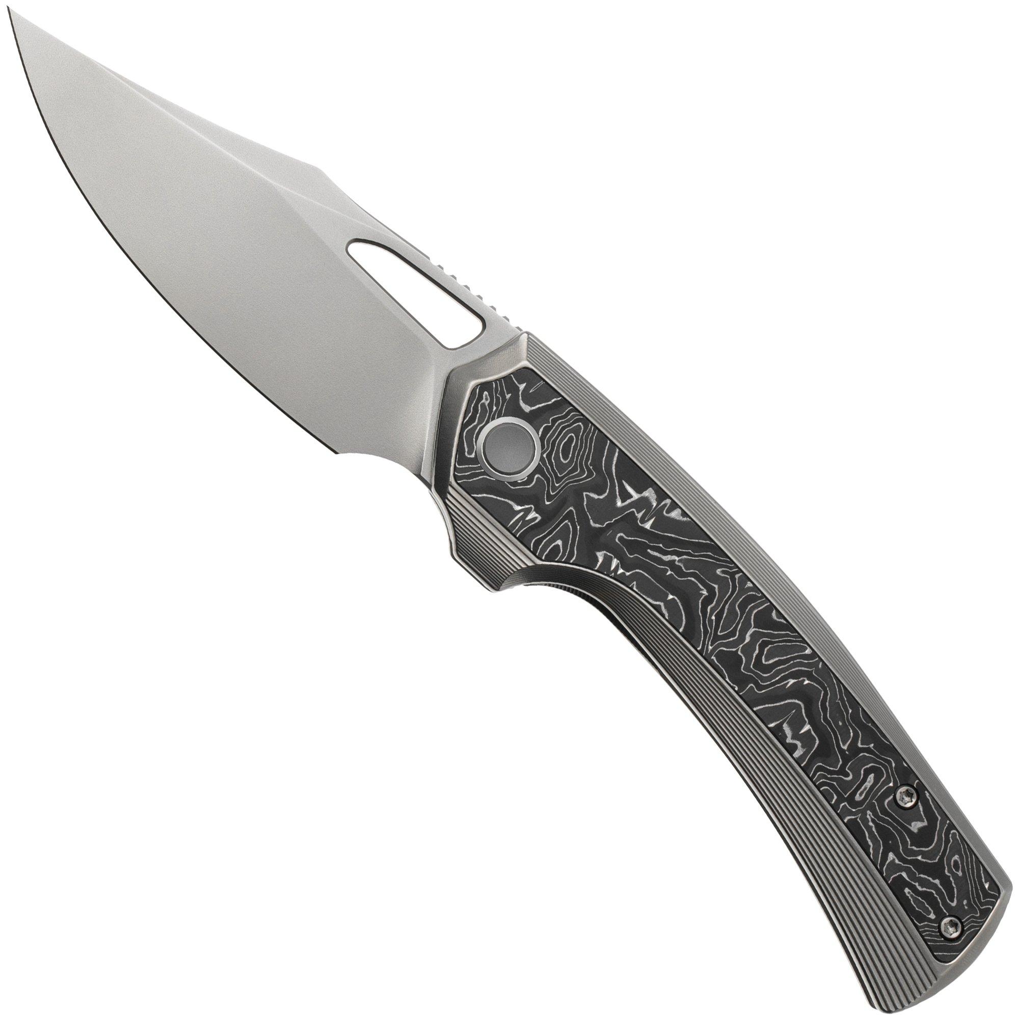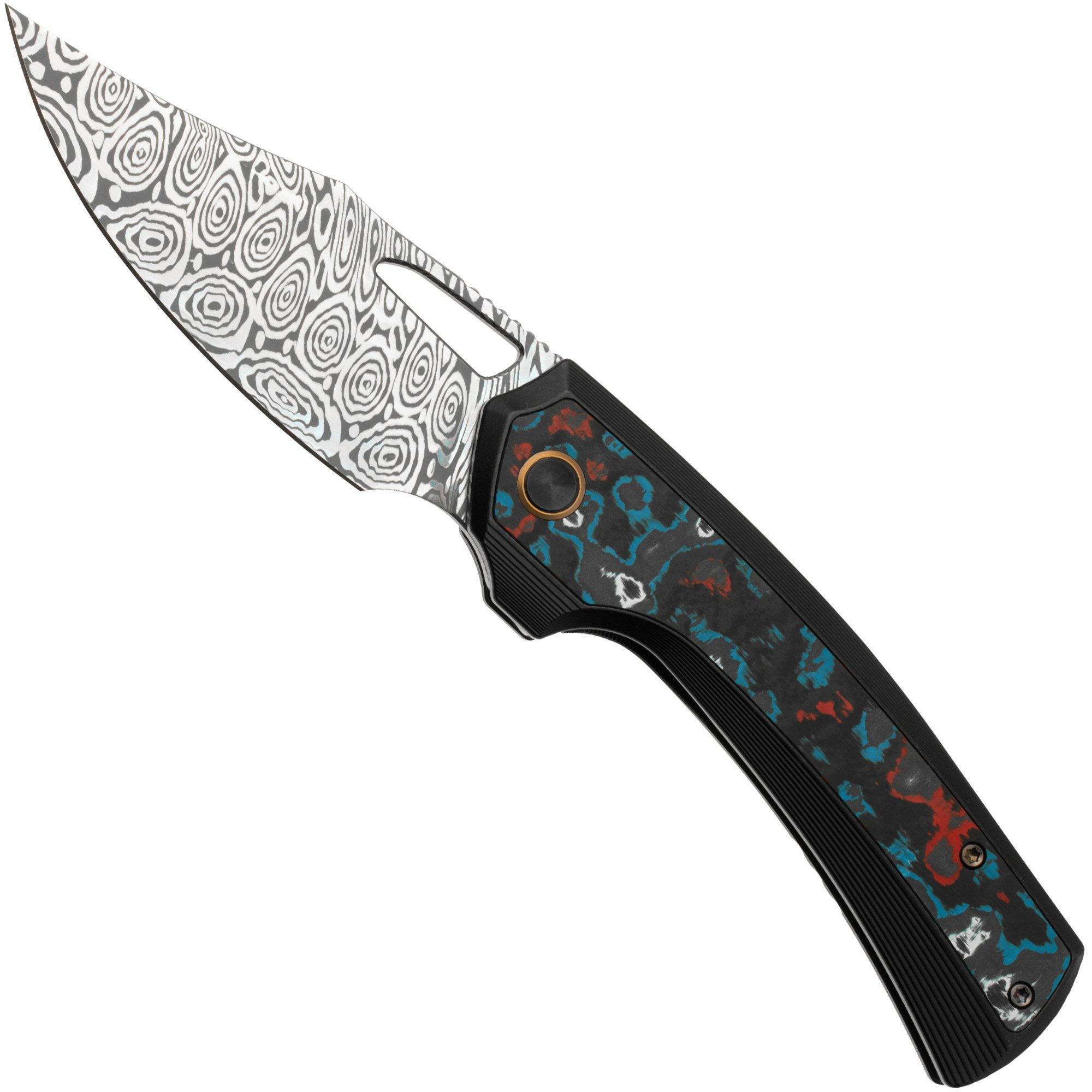 WE Knife Nefaris WE22040F-DS1, Heimskringla Damasteel Clippoint, Nebula Fat Carbon Black Titanium, coltello da tasca